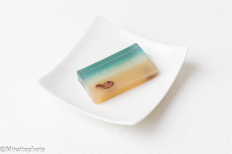 切り口が美しく、エメラルドグリーンの部分は琥珀羹。